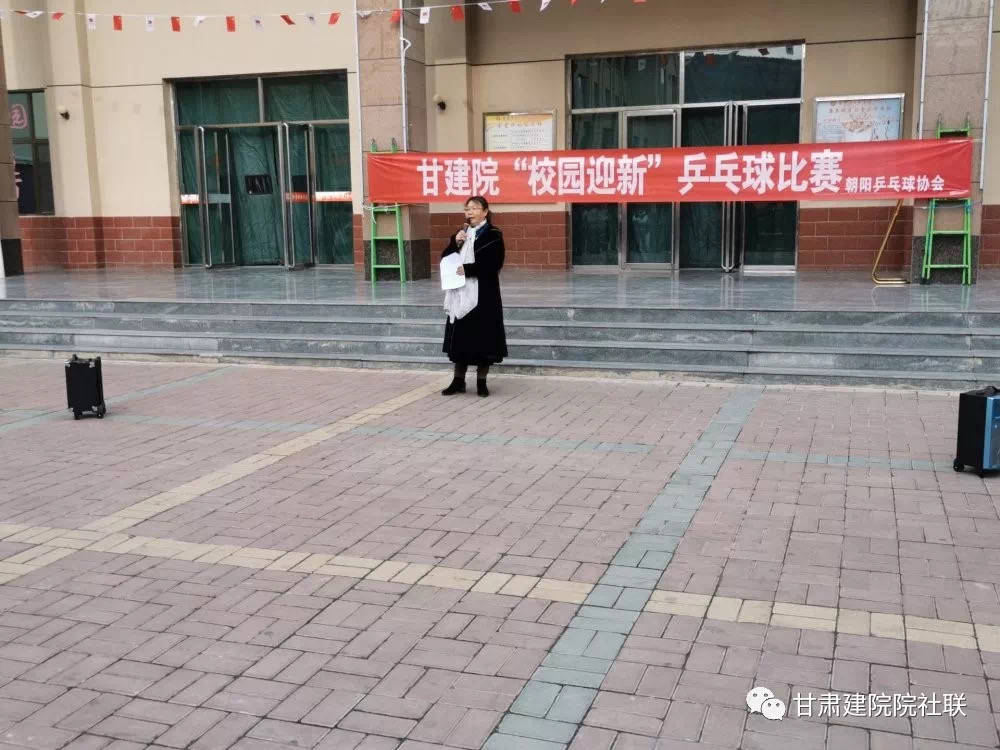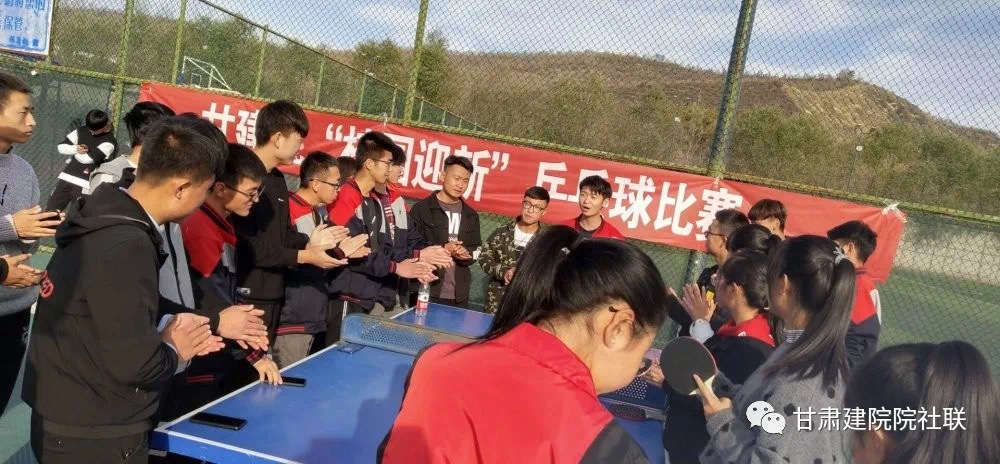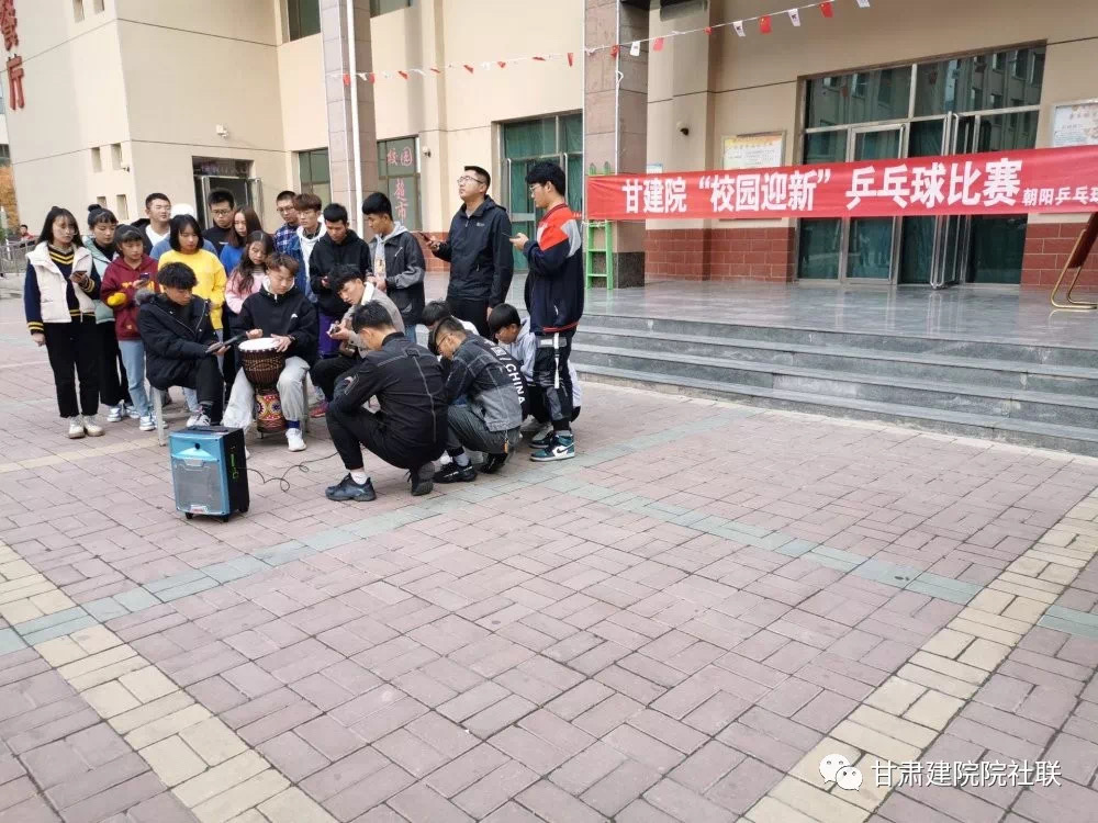 2019年10月26日下午,朝阳乒乓球协会举办的“校园迎新杯”乒乓球比赛在甘肃建筑职业技术学院康乐校区餐厅门前拉开了帷幕。本次比赛邀请了学生处老师和23个社团代表参加开幕式。