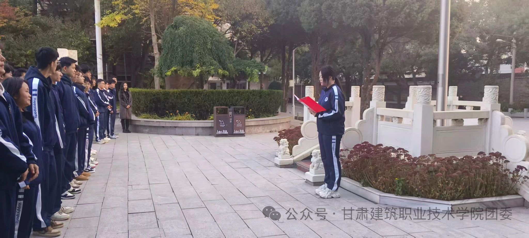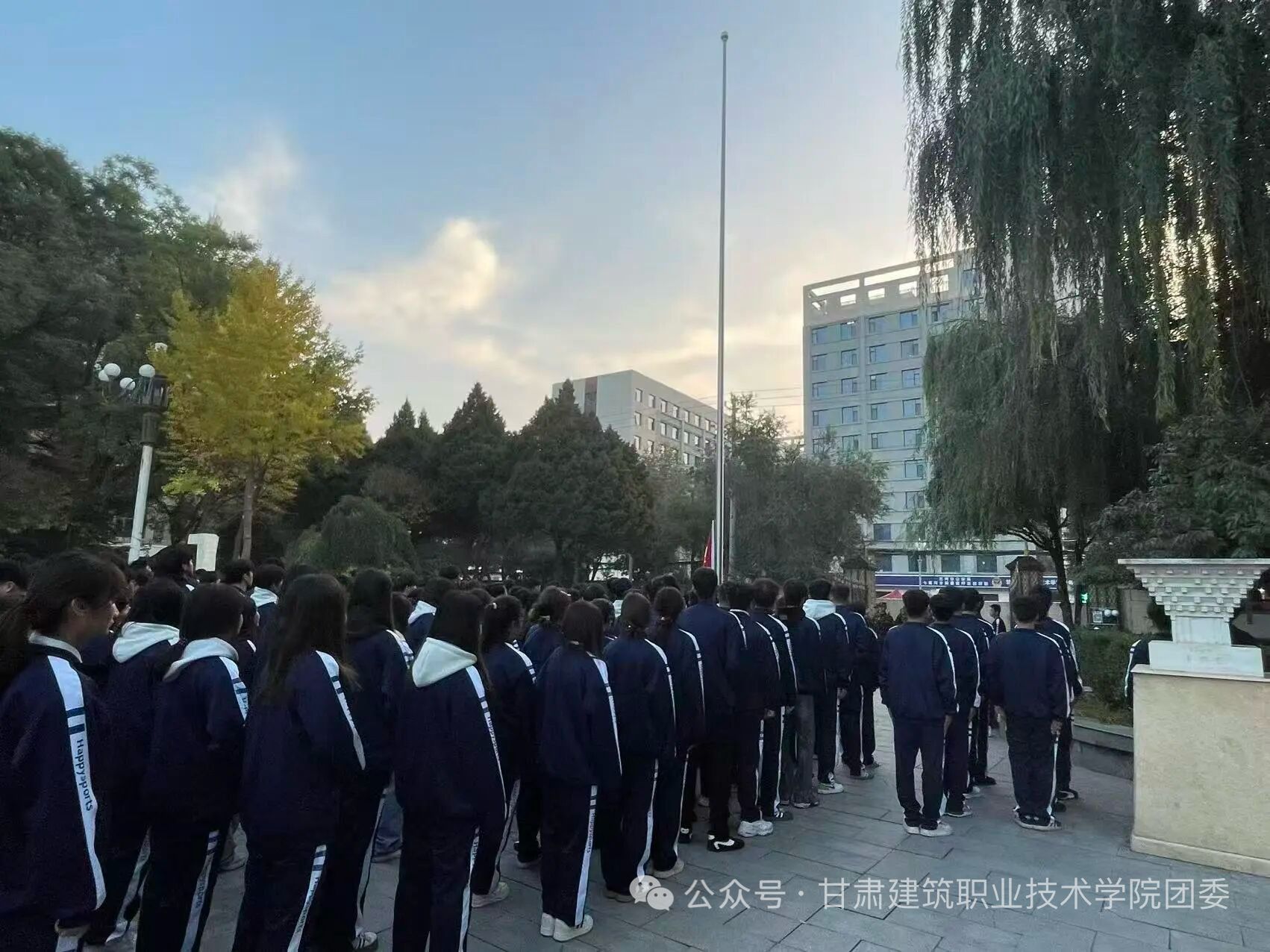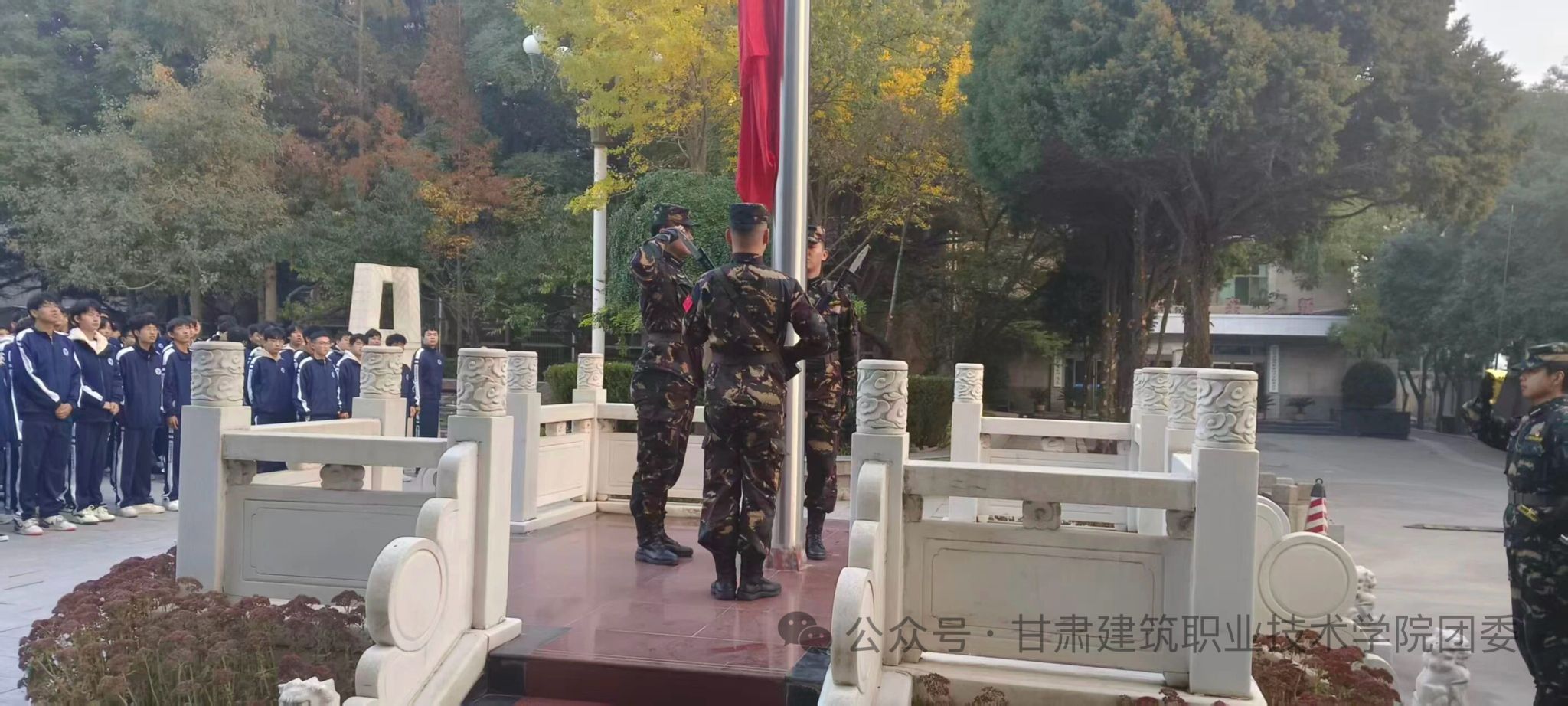 10月27日清晨,朝阳洒满校园。为厚植师生爱国情怀,甘肃建筑职业技术学院建筑经济管理学院300余名师生齐聚文化广场,隆重举行升国旗仪式,迎着朝阳共同见证五星红旗冉冉升起的庄严时刻。