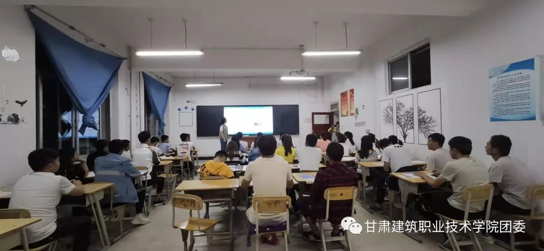 2019年9月3日晚自习期间,学院团委组织各班级观看《开学第一课》以及学习“习近平总书记视察甘肃的重要讲话精神”的团日活动,活动由各班班委负责。