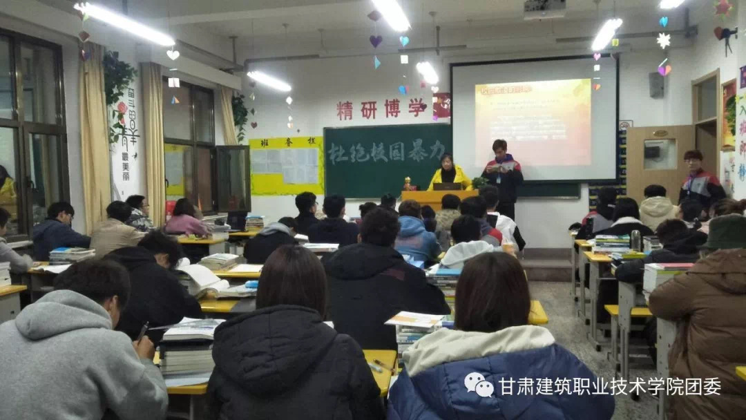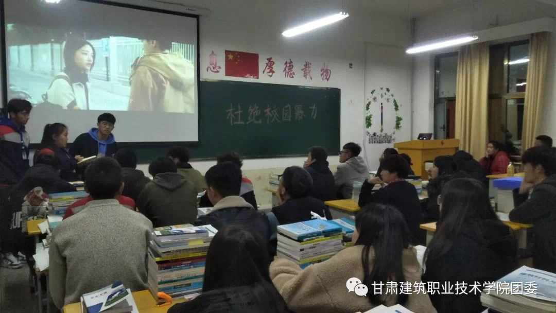 2019年11月19日,我院团委组织康乐校区各班开展了以“杜绝校园暴力”为主题的班会,班会由各班团支书主持开展。