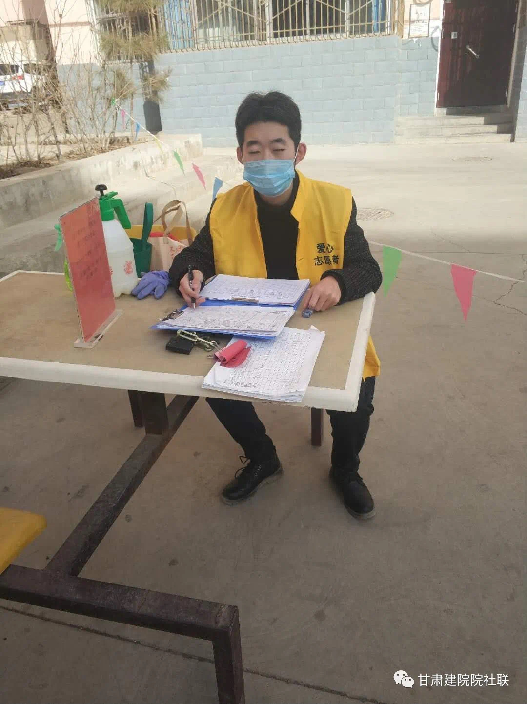 大学生社团办公室的闫甘霖同学自疫情爆发后,就加入了西厢村的志愿者队伍,在闫老庄疫情防控登记检查点执勤,对出入人员车辆进行详细的统计,并记录所有外来人员的体温。“我是学建筑行业的,我很敬佩修建了火神山和雷神山的前辈,虽然我目前无法完成这样的壮举,但是我愿意加入我们村的防疫建设,同为战胜疫情出力!”
