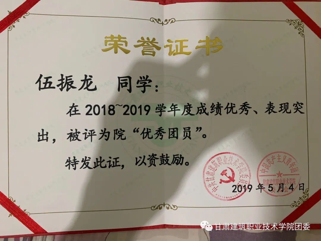 伍振龙作为建筑经济管理系学生会主席、18会计2班班长,他在思想上积极要求进步,学习上进,工作认真务实,为人谦虚坦诚,能够真正的为同学树立模范、起到带头作用。大学期间,他先后获得“优秀团员”、“建总奖学金”、“第35期党课“优秀学员””、“优秀标兵”等荣誉称号。他始终坚信“宝剑锋从磨砺出,梅花香自苦寒来”。经过两年多的大学生活,在各位老师的悉心关怀、孜孜教诲下,在同学们的无私帮助下,无论是思想工作上还是学习生活上他都取得了很大的进步。同时更加培养了他坚忍不拔、一丝不苟、认真务实的性格,使其对人生有了更加执着的追求和信心!