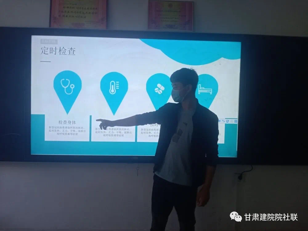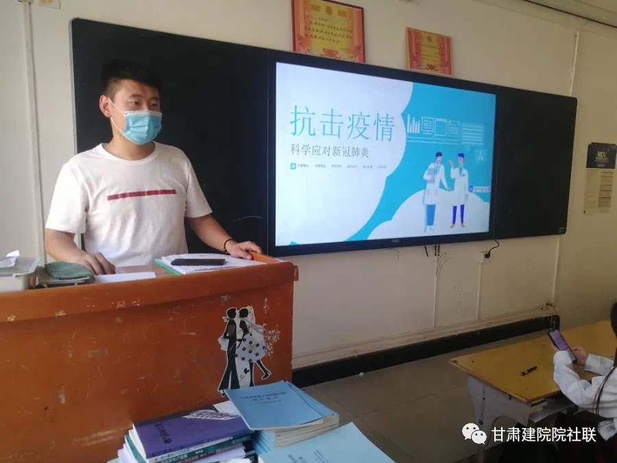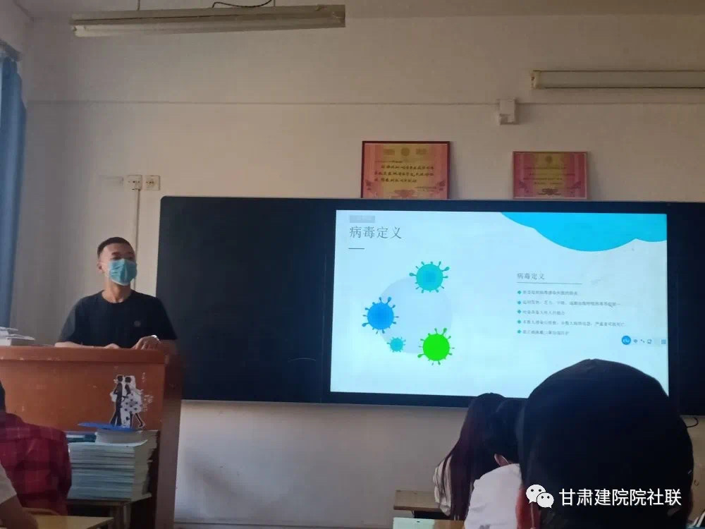 本次活动由马小裕同学主持,在假期参加疫情防控工作的同学纷纷上台发言,向同学们介绍了一些自己参与的防控工作内容以及志愿疫情防控工作的心得体会。对疫情有所了解的同学也纷纷上台,向同学们讲解疫情的一些症状、传播途径以及学院疫情防控的措施。