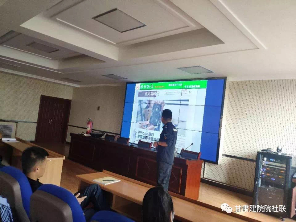 2019年11月22日,为培养我校消防安全知识的理解,由大学生伙食管理委员会联合保卫处举办的“消防安全知识讲座"活动在二号教学楼三楼学术报告厅展开。这次培训以食堂,宿舍用电防火为主题,为同学们讲解消防安全知识。