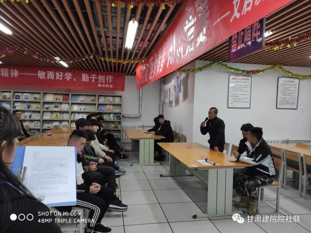 2019年11月23日下午,由甘肃建筑职业技术学院图书馆主办,文启读书协会承办的“以文会友,逐梦青春”为主题的知识竞赛活动在康乐校区图书馆举行。此次活动旨在弘扬中国传统文化,营造书香校园,陶冶同学们的情操,展现个人魅力。进一步增强我院各社团的沟通交流和同学间友谊,推进学校读书活动的发展,奠定良好的文化校园基础。